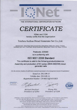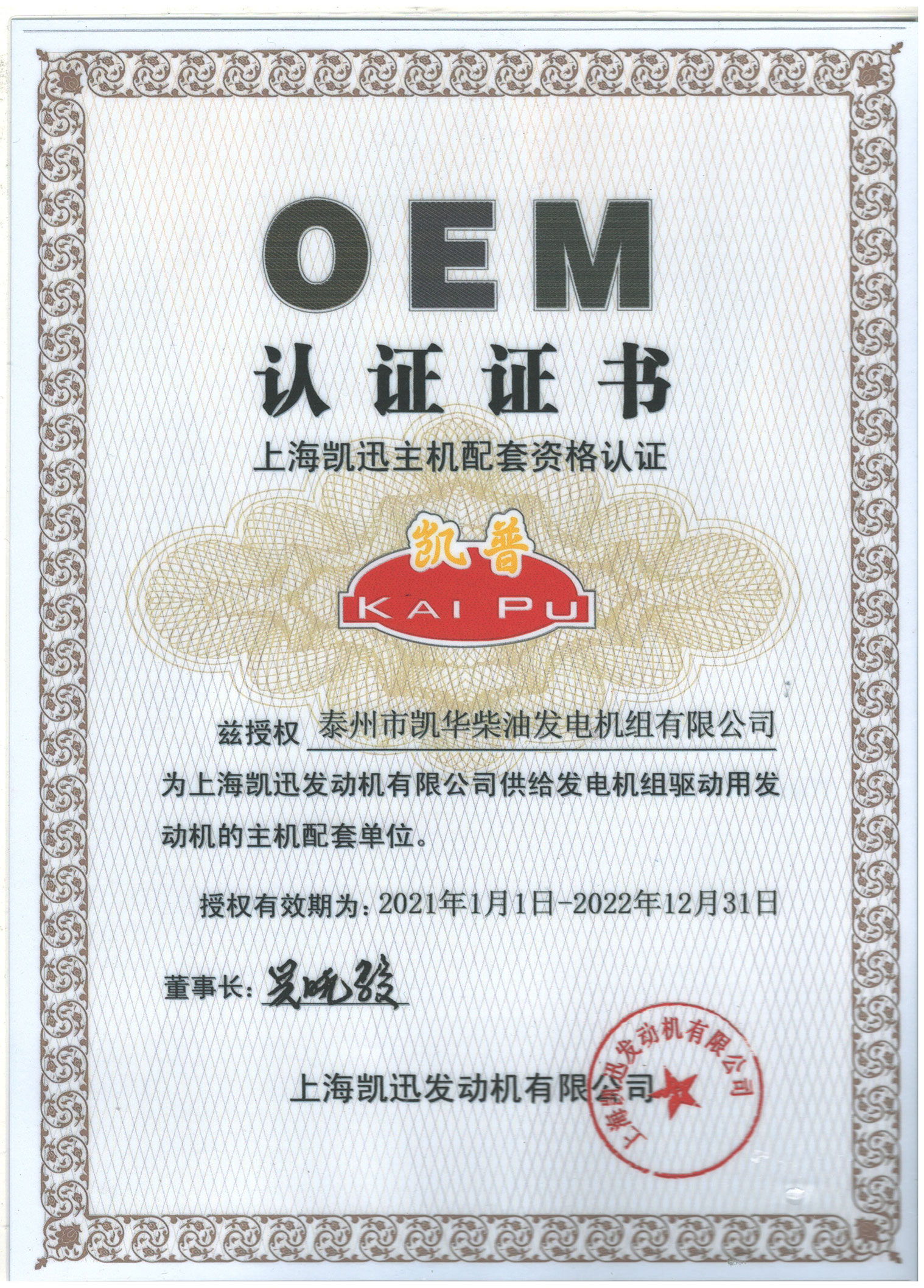 泰州市凱華柴油發電機組有限公司創建于2003年,是一家集柴油發電機組燃氣發電機組的研發、生產、銷售為一體的高新技術民營企業,公司座落于“漢唐古郡,淮海名區”,具有“鳳凰城”美稱的祥泰之州——江蘇省泰州市,地處中國經濟最發達的長三角經濟圈,水陸空立體交通,地理位置十分優越。公司目前注冊資本金11800萬元人民幣,生產基地占地六十畝,現有各類高素質員工一百多名,專業技術人員達46人,其中高級技術人員16人,年銷售額近6億元。 公司主營產品:3~3000KW陸用柴油發電機組,15~600KW移動拖車電站,12~1000KW船用應急柴油發電機組,各種靜音型、中高壓、多機并聯、燃氣等特種機組以及進口系列柴油發電機組,可滿足不同客戶的一切電力需求,還可滿足用戶不同電壓、不同頻率的要求。凱華公司是康明斯品牌的授權代理商,專業生產供應康明斯柴油發電機組。